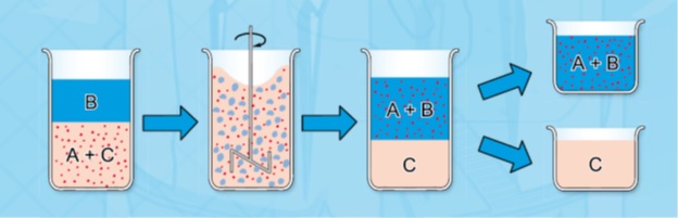 - فاز استخراج: (عموماً حاوی A و B، همراه با C باقیمانده)